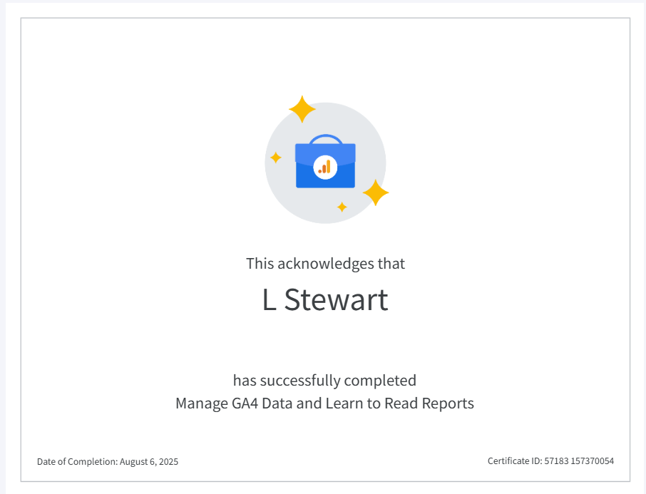 Google Analytics 4 (GA4) Certification – Google Skillshop (2025)